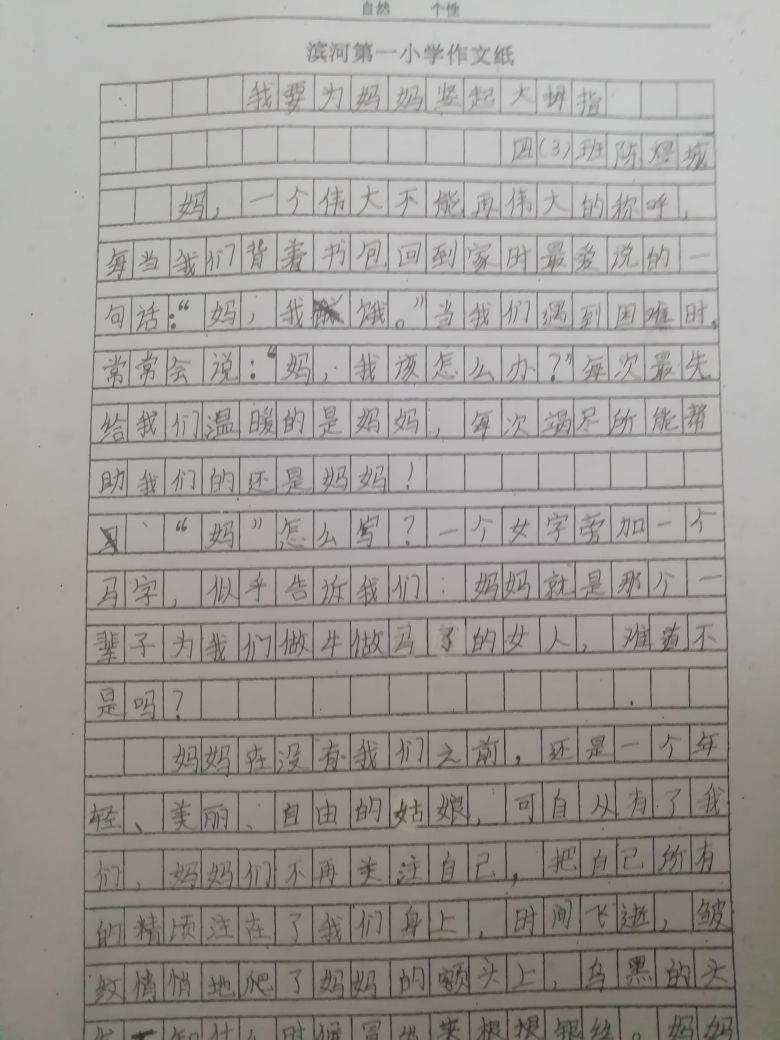 我要为妈妈竖起大拇指 热650 类别:写人 发表时间:2019-10-14 13:51 已有 651 次阅读 指导老师:徐昐盼 所属学校:滨河第一小学