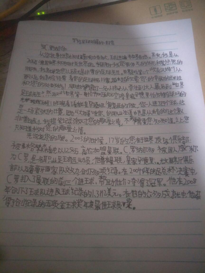 给C.罗的一封信 热638 类别:写人 发表时间:2020-12-19 17:41 已有 639 次阅读 指导老师:刘海霞 所属学校:西大街青石河学校