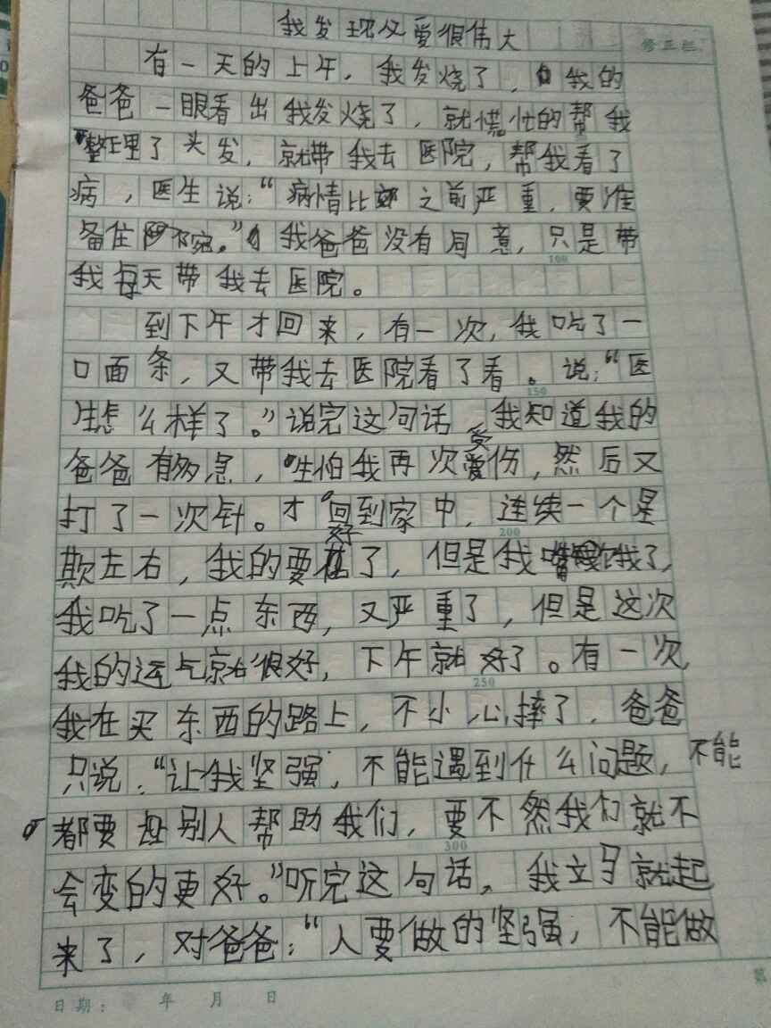 我发现父爱很伟大 热658 类别:叙事 发表时间:2021-05-15 08:13 已有 659 次阅读 指导老师:刘海霞 所属学校:西大街青石河学校