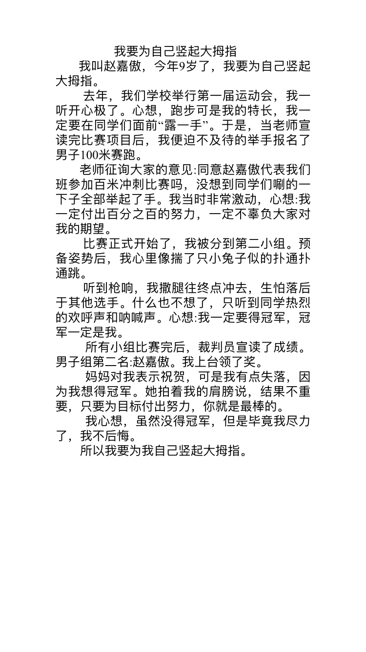 我要为自己竖起大拇指 热749 类别:叙事 发表时间:2019-10-14 18:53 已有 750 次阅读 指导老师:刘亚楠 所属学校:长江东路第二小学