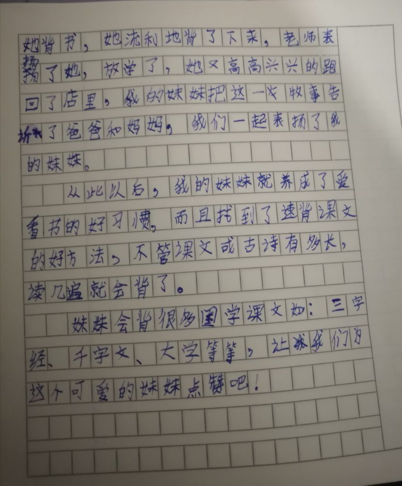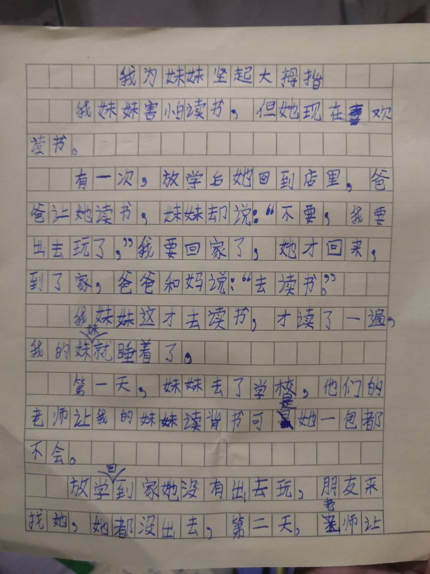我要妹妹竖起大拇指 热950 类别:写人 发表时间:2019-10-15 07:15 已有 951 次阅读 指导老师:于浩然 所属学校:郑州市惠济区开元路小学