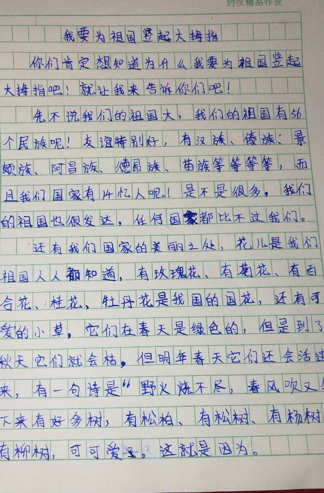 我为我的祖国竖起大拇指 热995 类别:抒情 发表时间:2019-10-15 13:38 已有 996 次阅读 指导老师:于浩然 所属学校:郑州市惠济区开元路小学