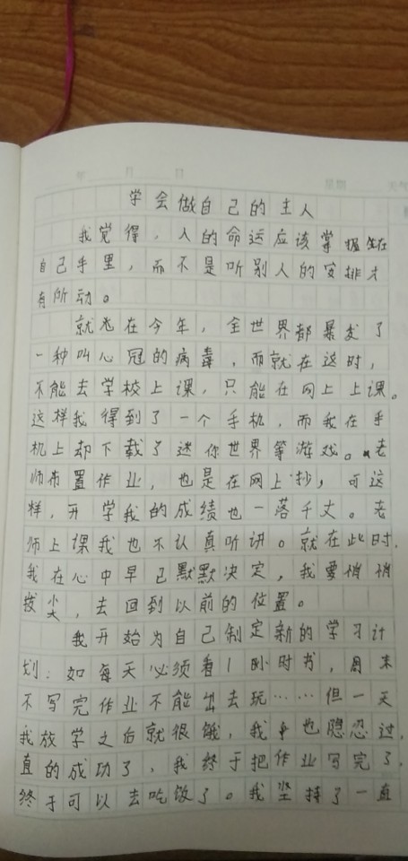 学会做自己的主人 热695 类别:抒情 发表时间:2021-05-09 16:27 已有 696 次阅读 指导老师:刘海霞 所属学校:西大街青石河学校
