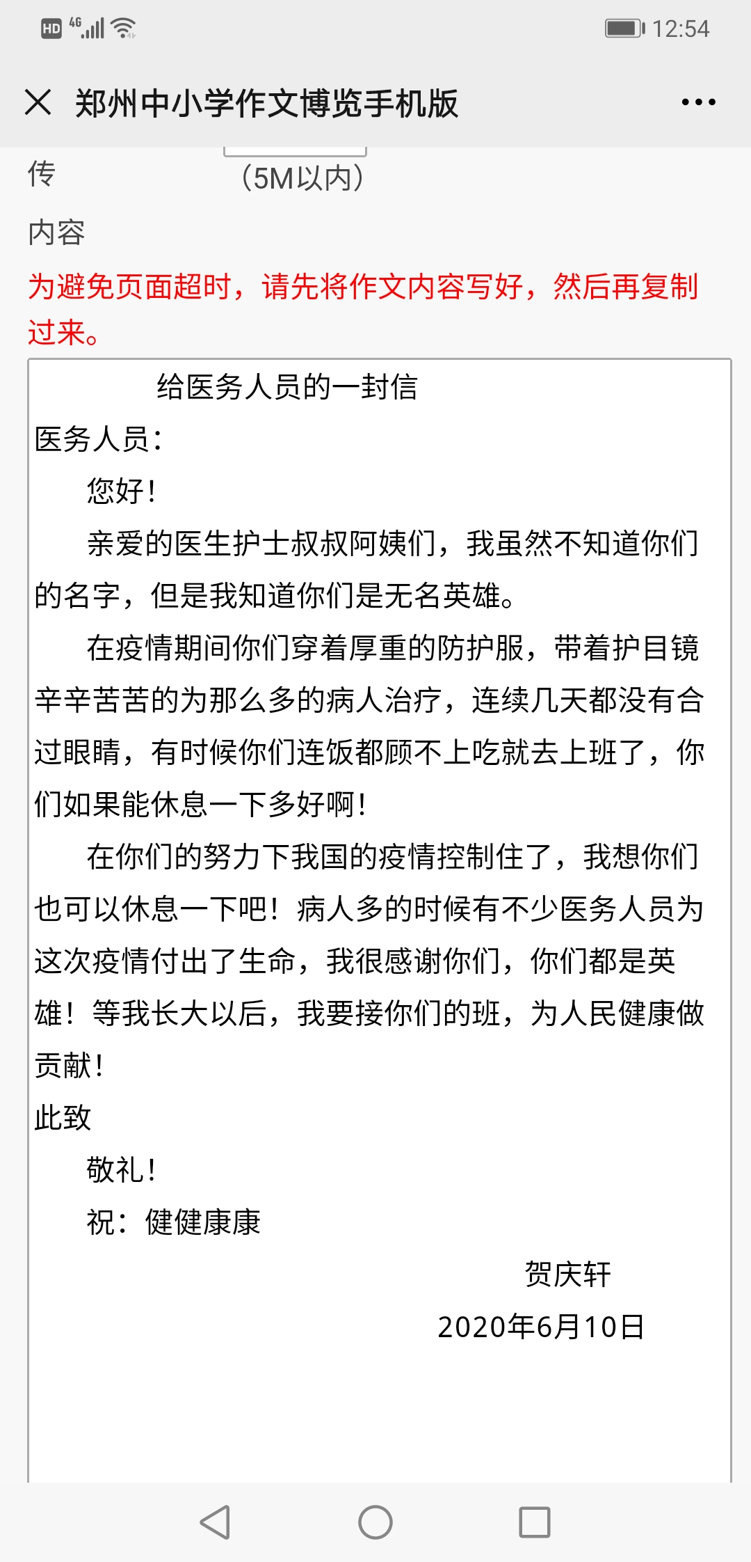 给医务人员的一封信 热497 类别:其他 发表时间:2020-06-11 01:03 已有 498 次阅读 指导老师:曲剑 所属学校:郑州市惠济区开元路小学