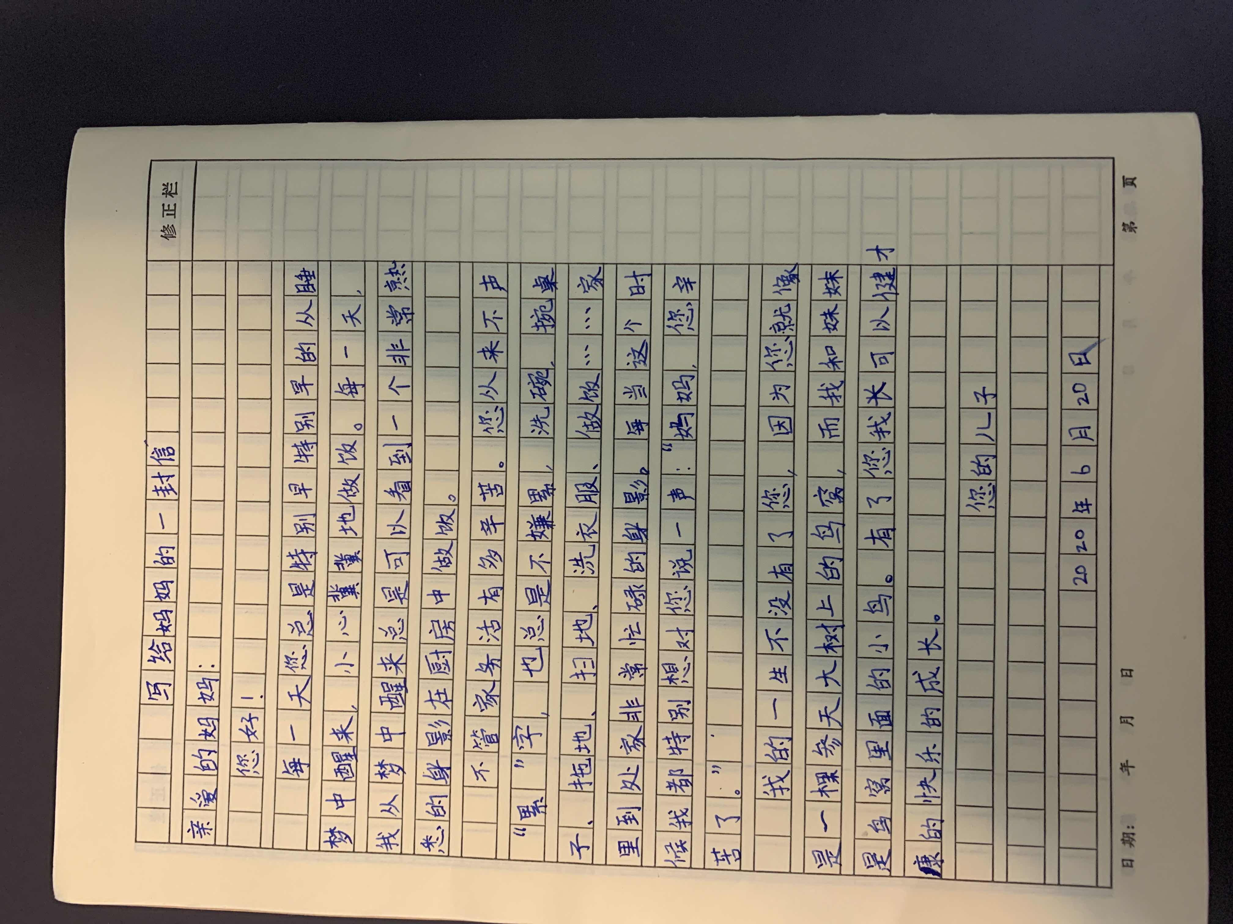 写给妈妈的一封信 热366 类别:其他 发表时间:2020-06-21 20:48 已有 367 次阅读 指导老师:于浩然 所属学校:郑州市惠济区开元路小学