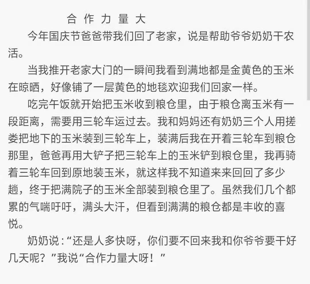 合作力量大 热342 类别:叙事 发表时间:2019-10-15 11:02 已有 343 次阅读 指导老师:于浩然 所属学校:郑州市惠济区开元路小学