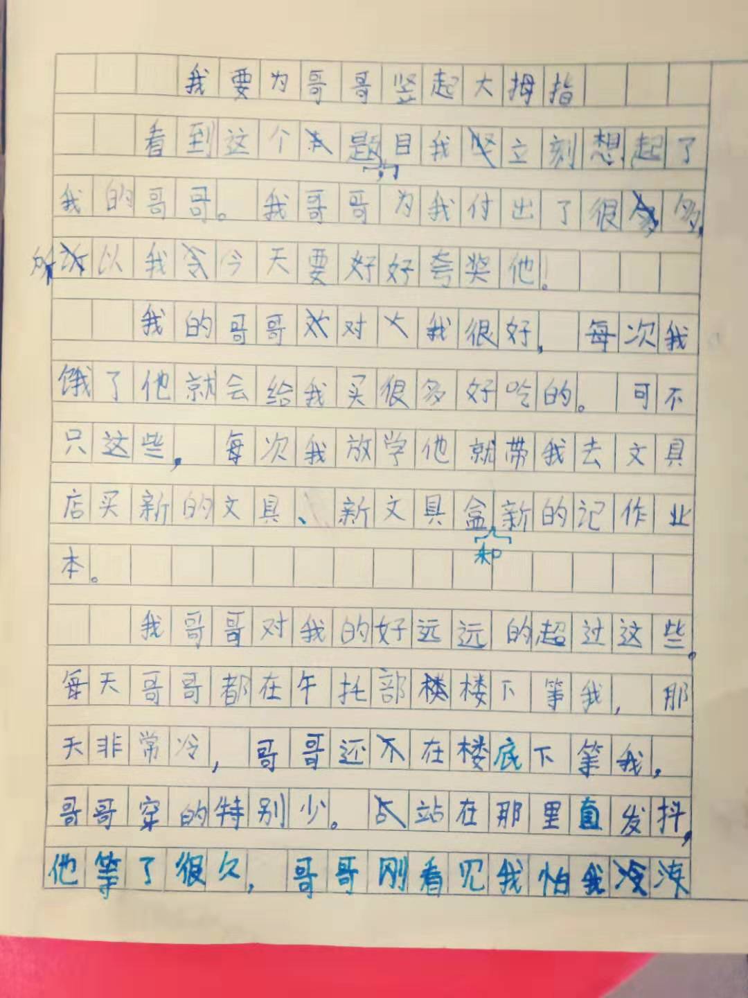 我要为哥哥竖起大拇指 热649 类别:写人 发表时间:2019-10-15 12:10 已有 650 次阅读 指导老师:赵晶晶 所属学校:郑州市惠济区开元路小学