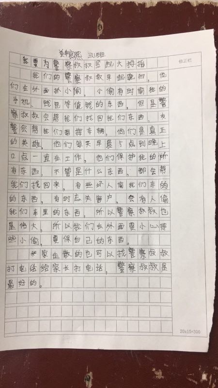 我要为警察叔叔竖起大拇指 热789 类别:写人 发表时间:2019-10-15 15:41 已有 790 次阅读 指导老师:白少慧 所属学校:郑州市惠济区开元路小学