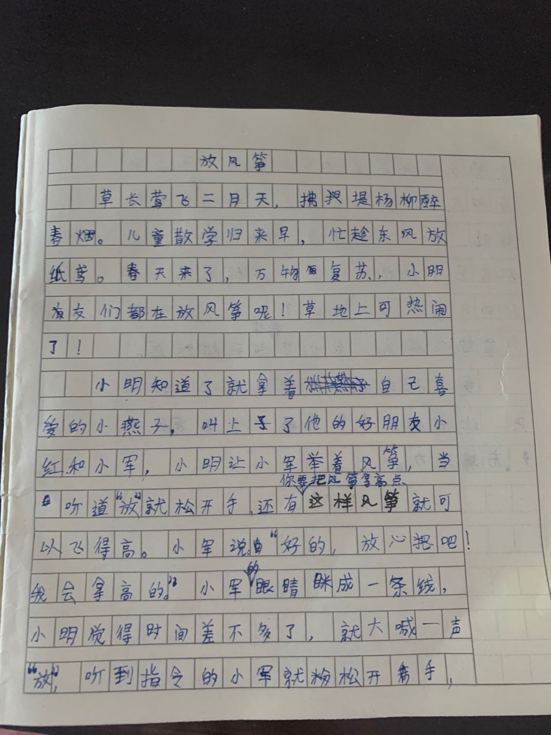放风筝 热1019 类别:状物 发表时间:2020-03-08 18:31 已有 1020 次阅读 指导老师:李欢欢 所属学校:郑州丽水外国语学校