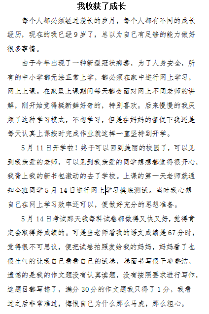 我收获了成长 热467 类别:记叙 发表时间:2020-05-31 11:21 已有 468 次阅读 指导老师:韩玲玲 所属学校:登封市书院河路小学
