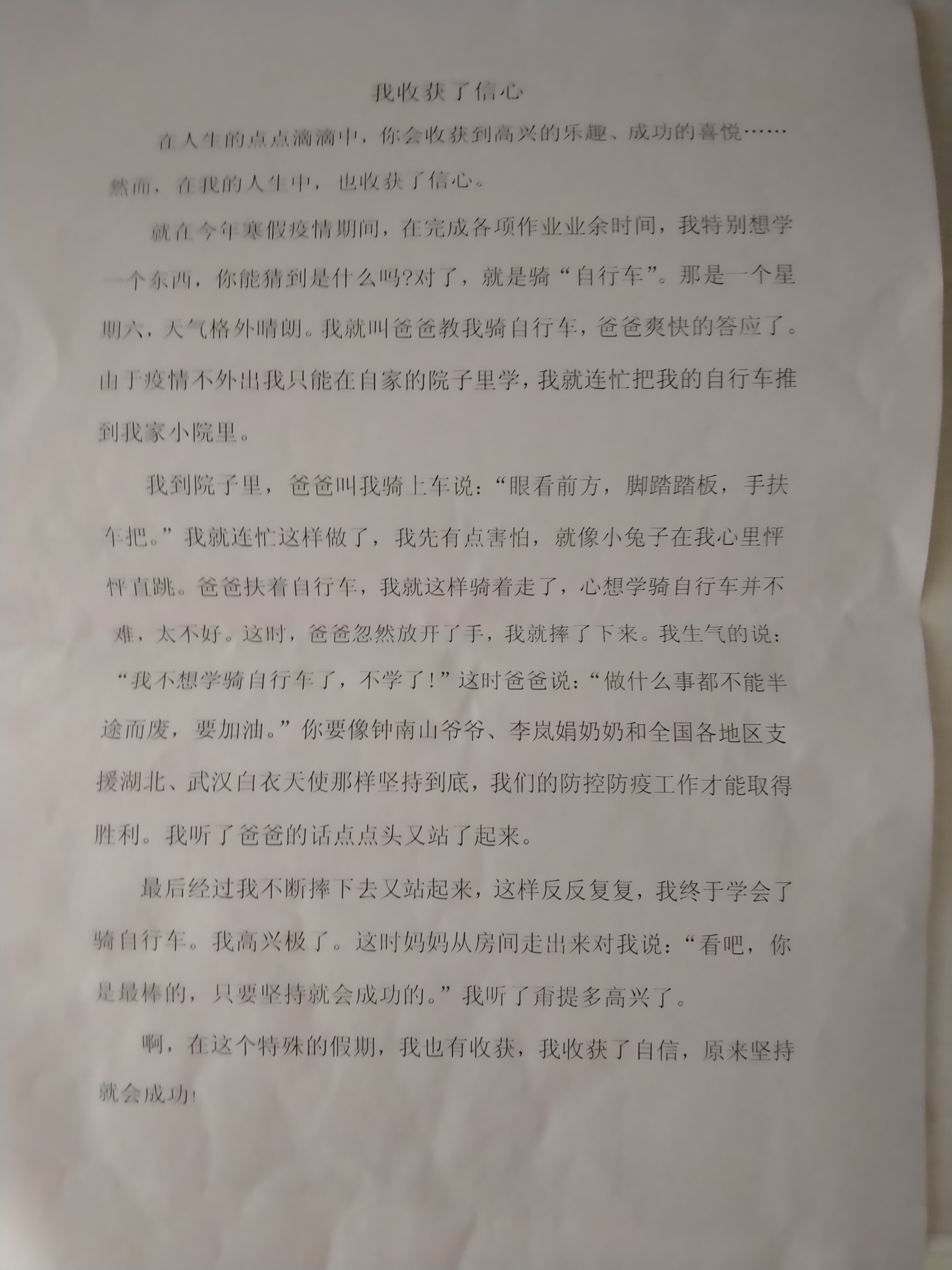 我收获了信心 热1214 类别:记叙 发表时间:2020-06-01 08:09 已有 1215 次阅读 指导老师:登封市书院河路小学刘婷婷 所属学校:登封市书院河路小学