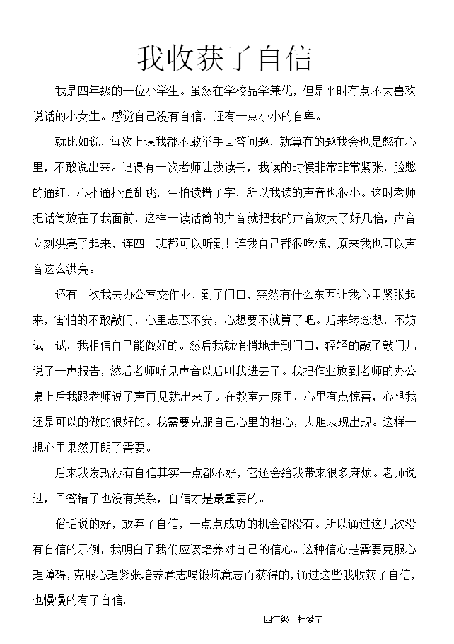 我收获了自信 热455 类别:记叙 发表时间:2020-06-17 18:42 已有 455 次阅读 指导老师:武青丽 所属学校:苏屯小学