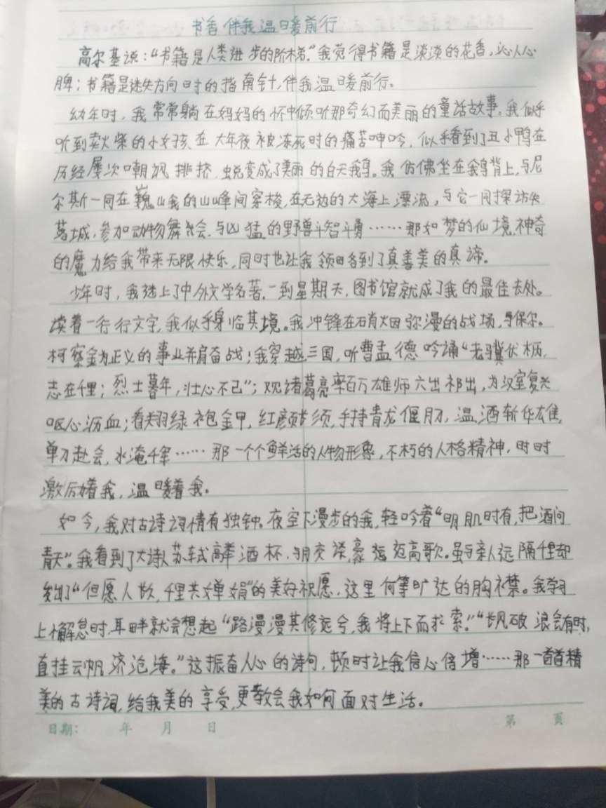 书香伴我温暖前行 热1135 类别:叙事 发表时间:2021-09-14 09:39 已有 1136 次阅读 指导老师:刘巧莉 所属学校:登封市白坪乡初级中学