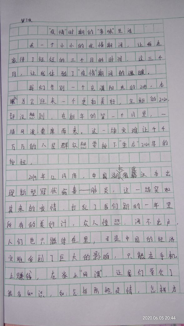 “疫情”时期的“多味”生活 热488 类别:原创 发表时间:2020-06-05 20:45 已有 489 次阅读 指导老师:王利辉 所属学校:巩义市鲁庄镇第一初级中学