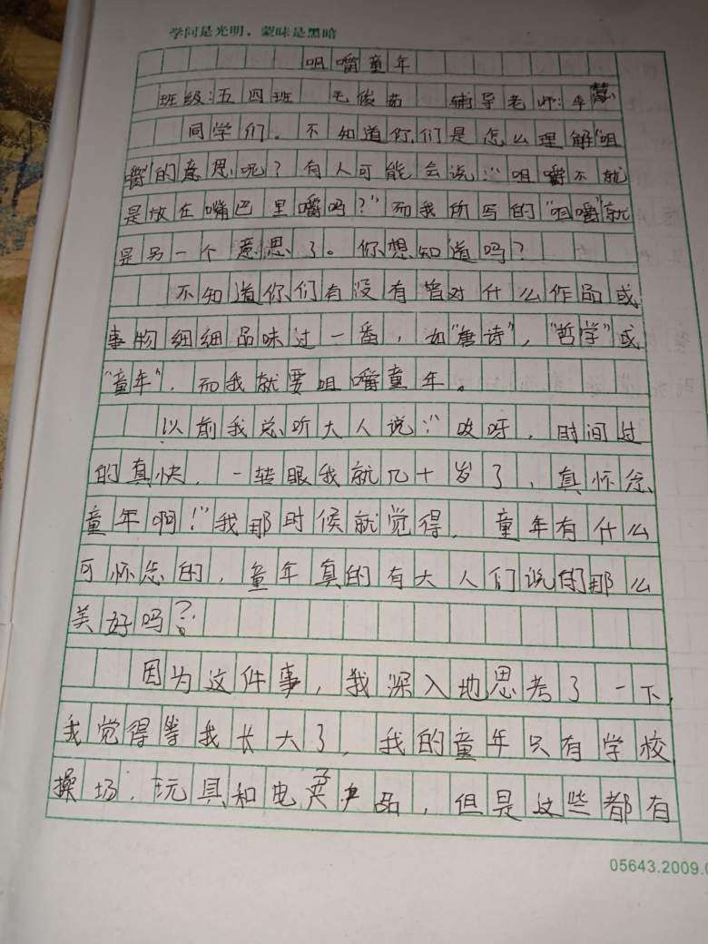 咀嚼童年 热287 类别:叙事 发表时间:2021-09-14 17:41 已有 288 次阅读 指导老师:李慧 所属学校:中牟县平安路学校