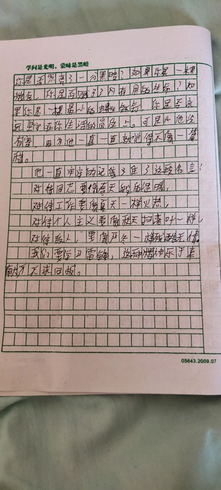 版权说明: A类权限 我谨保证我是此作品的著作权人,并且此作品系首发于郑州教育信息网作文博览频道。我同意郑州教育信息网作文博览频道作为此作品版权的独占代理人。在撤销本委托之前,我不再将此作品投给其他媒体,有关此作品发表和转载等任何事宜,由郑州教育信息网作文博览频道全权负责。未经郑州教育信息网作文博览频道转授权,其他媒体一律不得转载。 |