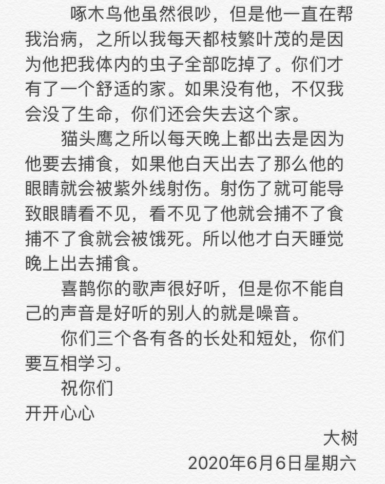 致鸟儿们的一封信 热210 类别:其他 发表时间:2020-06-06 23:55 已有 211 次阅读 指导老师:魏利霞 所属学校:新密市金凤路小学