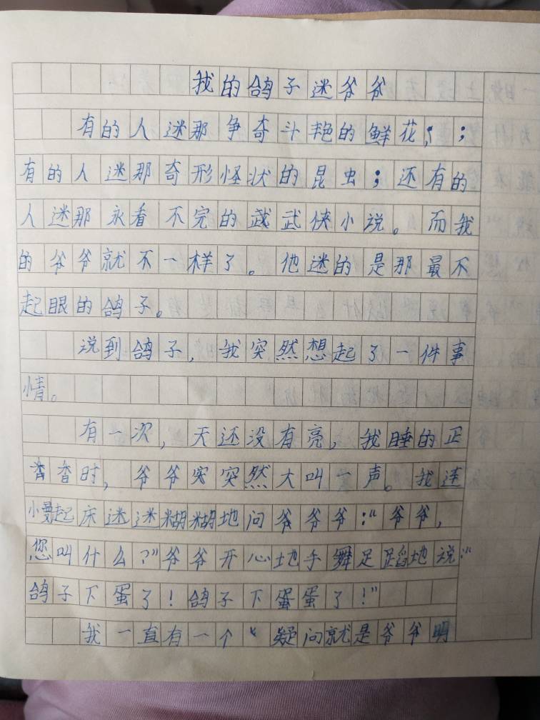 我的鸽子迷爷爷 热518 类别:写人 发表时间:2020-07-03 10:43 已有 519 次阅读 指导老师:无 所属学校:金水区未来小学