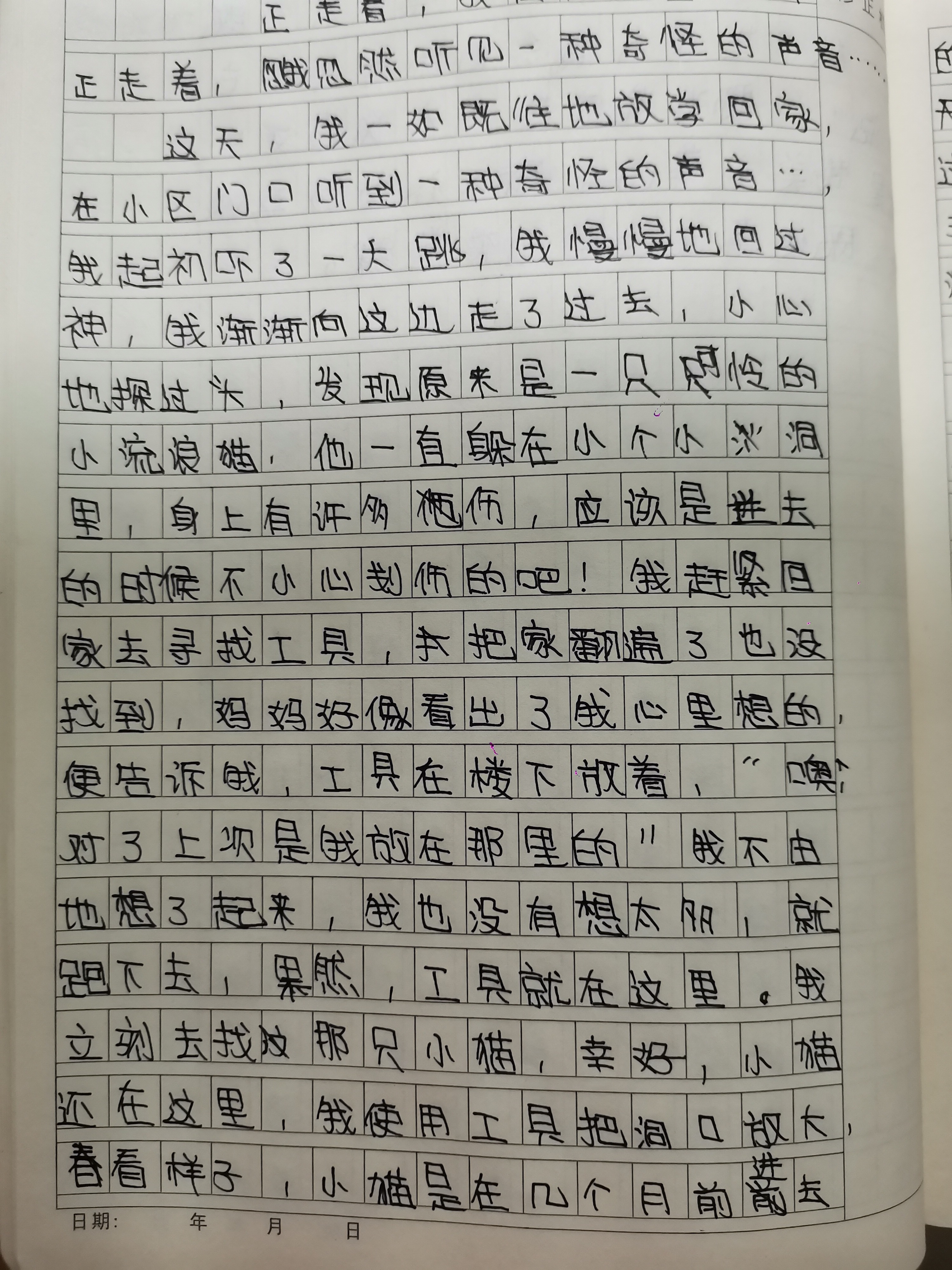 正走着,我忽然听见一种奇怪的声音…… 热607 类别:记叙 发表时间:2020-10-11 22:36 已有 608 次阅读 指导老师:樊丽丽 所属学校:新密市金凤路小学