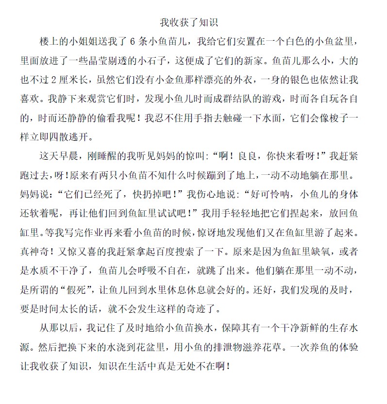 我收获了知识 热1466 类别:记叙 发表时间:2020-06-09 22:23 已有 1465 次阅读 指导老师:李卓凡 所属学校:郑州市管城回族区港湾路小学