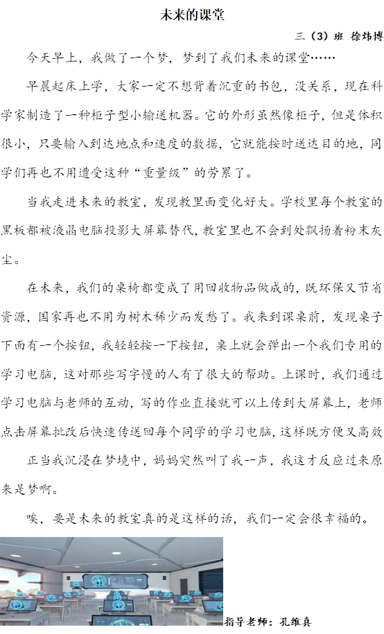 未来课堂 热816 类别:原创 发表时间:2020-06-10 10:53 已有 810 次阅读 指导老师:孔维真 所属学校:华中师范大学附属高新区荣邦城小学