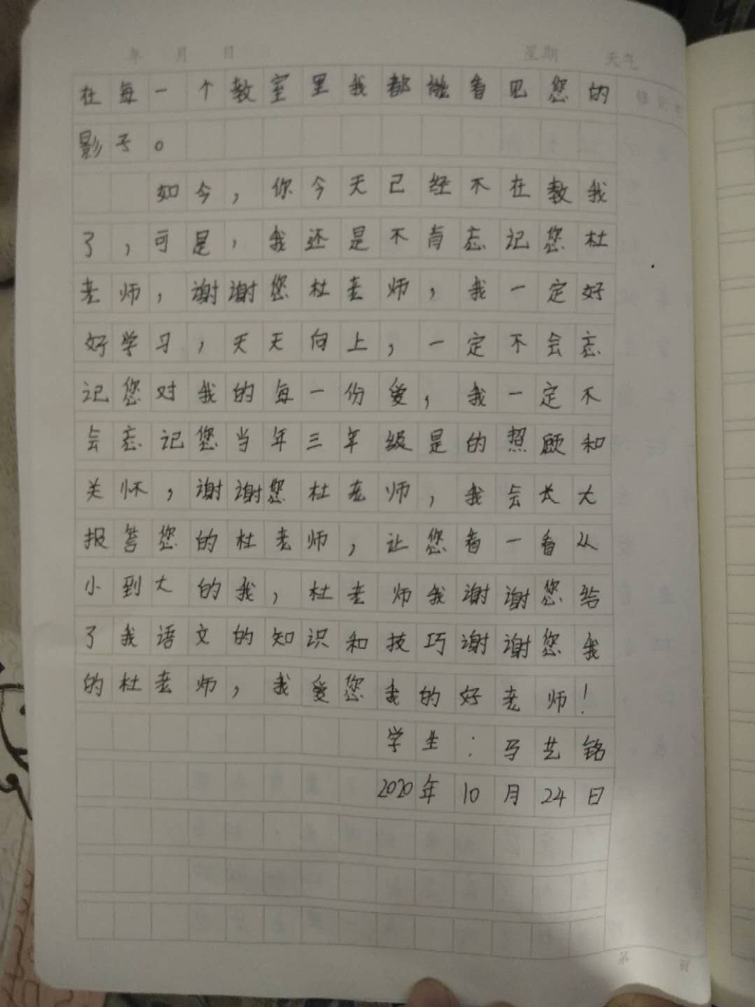 写给马老师的一封信 热412 类别:写人 发表时间:2020-10-28 21:34 已有 413 次阅读 指导老师:杜 所属学校:新密市市直第二小学