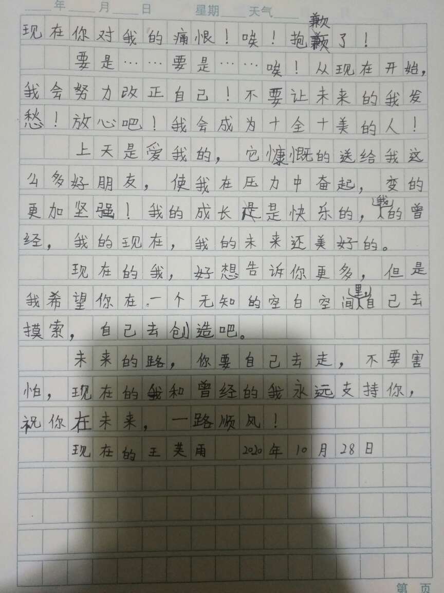 写给未来的我的一封信 热629 类别:写人 发表时间:2020-10-29 07:07 已有 630 次阅读 指导老师:冯晓利 所属学校:新密市市直第二小学