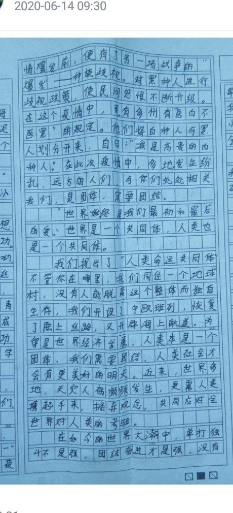 我们,团结与共 热1143 类别:议论 发表时间:2020-06-14 09:43 已有 1144 次阅读 指导老师:曹艳丽 所属学校:登封市实验高级中学