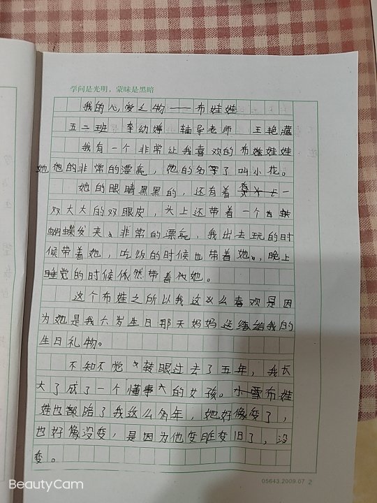 我的心爱之物布娃娃 热556 类别:状物 发表时间:2021-09-13 19:57 已有 557 次阅读 指导老师:王艳藏 所属学校:中牟县平安路学校