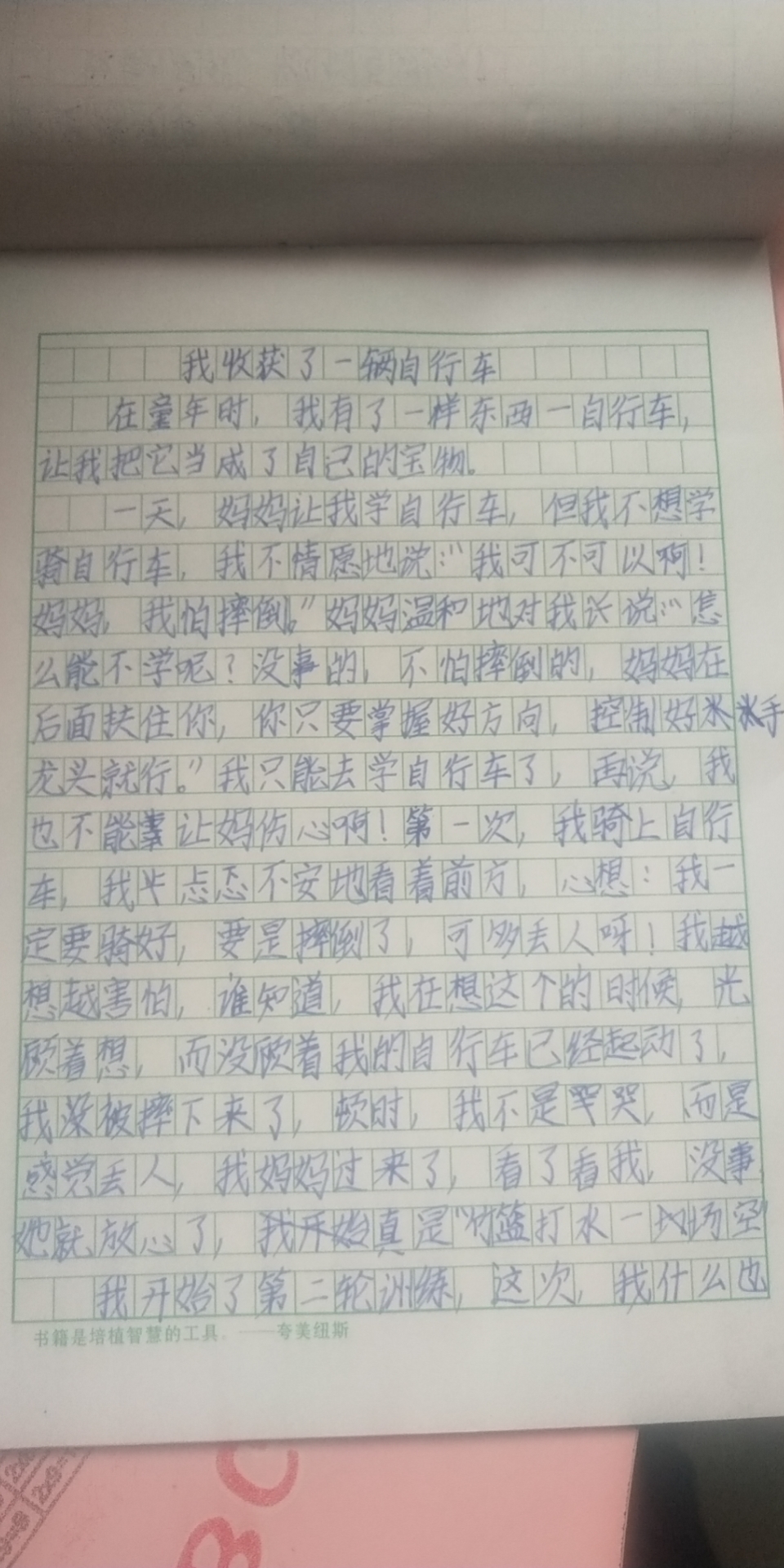 我收获了一辆自行车 热215 类别:记叙 发表时间:2020-06-15 09:51 已有 216 次阅读 指导老师:鲁焕 所属学校:新郑市郑韩路小学