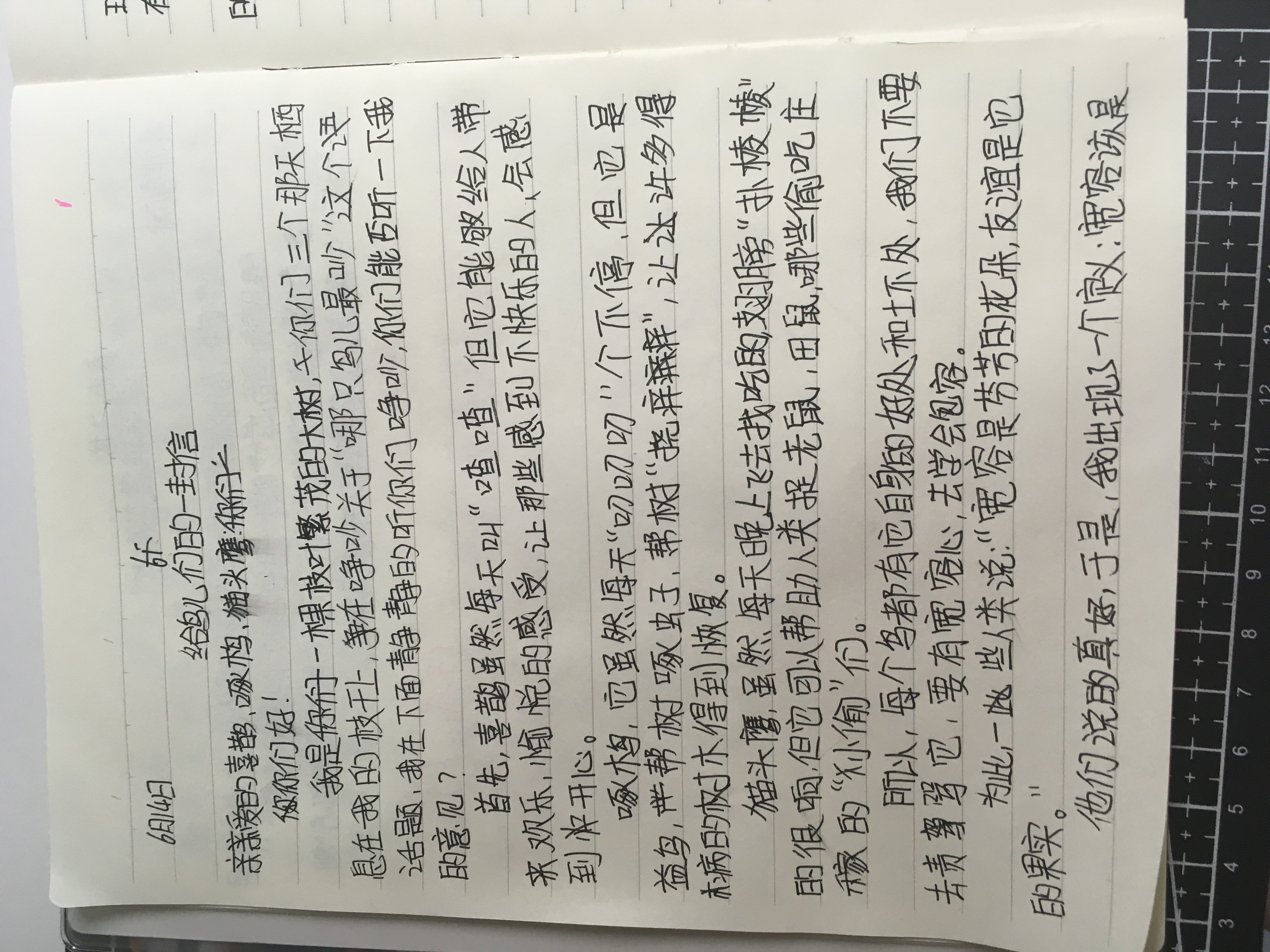 给小鸟的一封信 热451 类别:原创 发表时间:2020-06-14 23:24 已有 452 次阅读 指导老师:张彩丽 所属学校:新密市实验小学