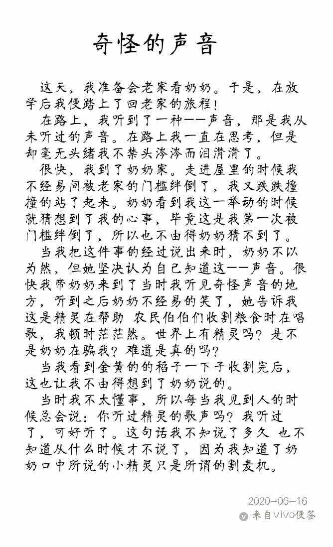 奇怪的声音 热447 类别:叙事 发表时间:2020-06-16 21:21 已有 448 次阅读 指导老师:史付琴 所属学校:新郑市观音寺镇南场小学