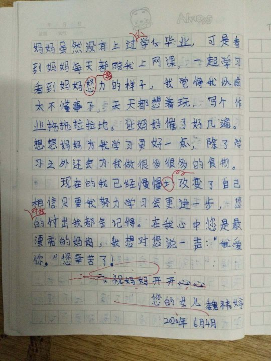 写给妈妈的信 热689 类别:写人 发表时间:2020-06-16 20:47 已有 690 次阅读 指导老师:张美玲 所属学校:新郑市外国语小学