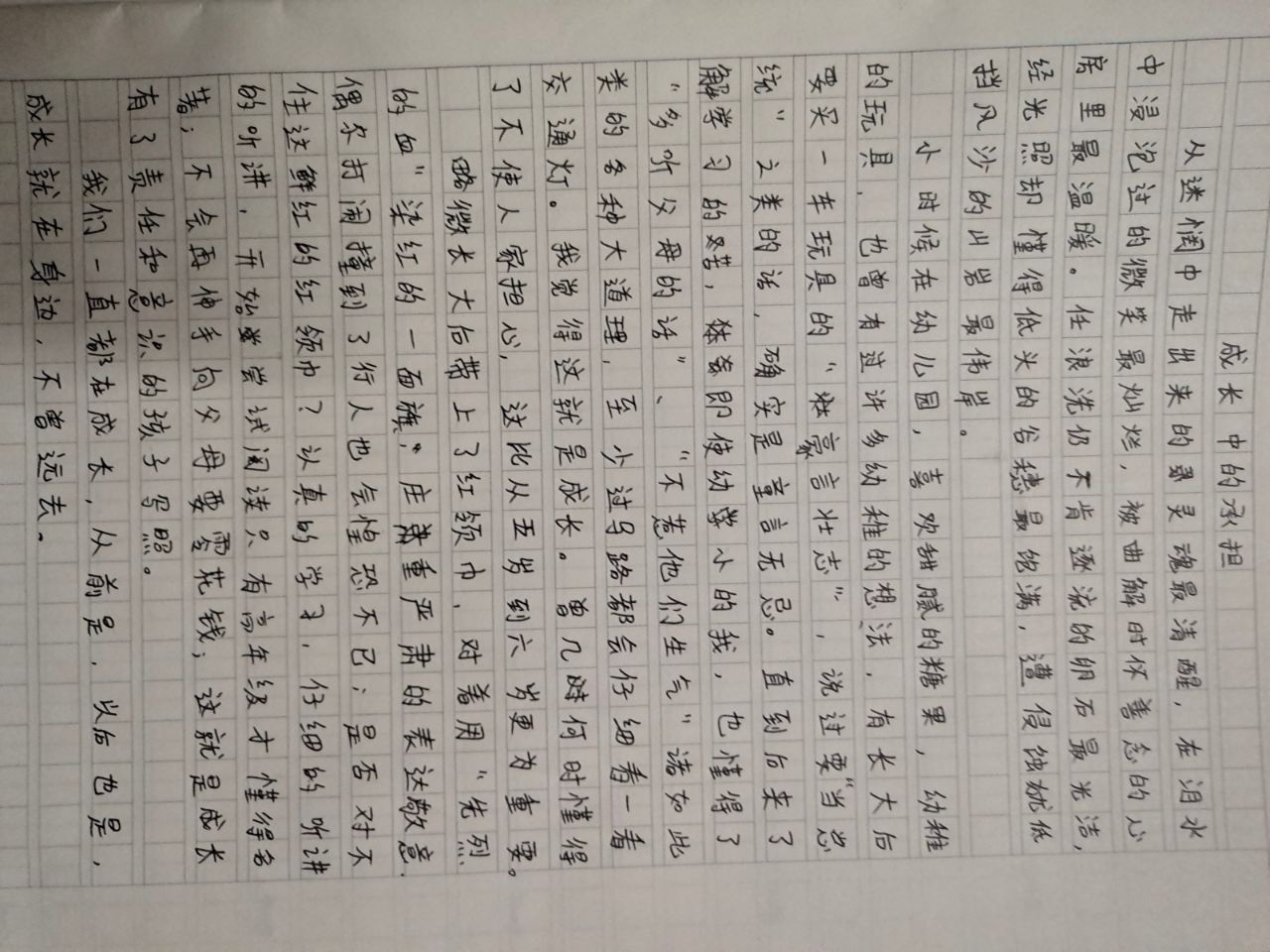 成长中的承担 热288 类别:叙事 发表时间:2021-09-12 18:43 已有 289 次阅读 指导老师:付冉 所属学校:新郑市实验中学