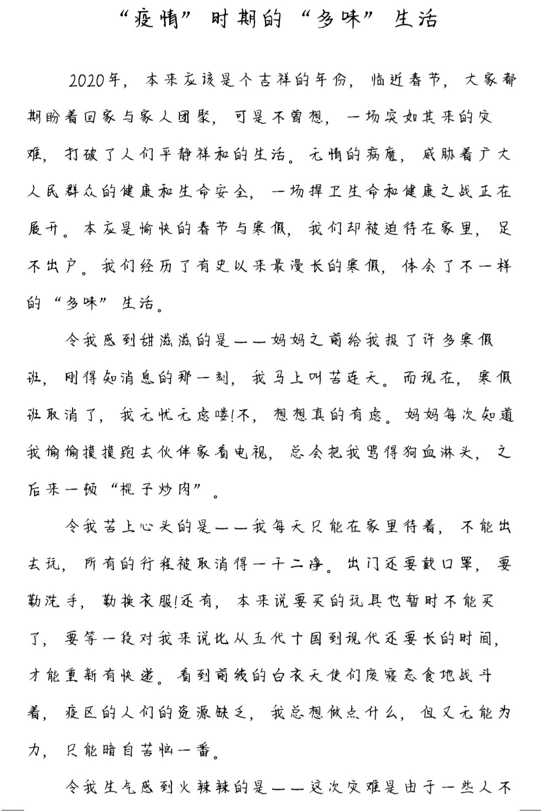 “疫情”时期的“多味”生活 热542 类别:叙事 发表时间:2020-06-19 19:51 已有 543 次阅读 指导老师:蒋永辉 所属学校:巩义市康店镇第一初级中学