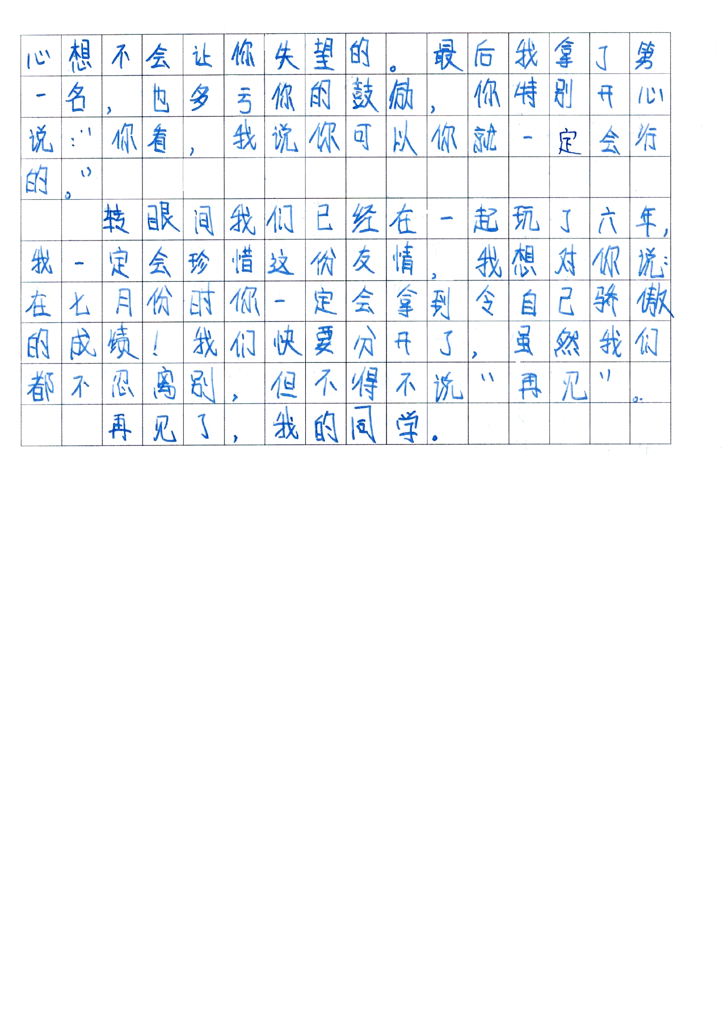 再见了,我的同学 热383 类别:原创 发表时间:2020-06-20 06:57 已有 384 次阅读 指导老师:秦玲玲 所属学校:新郑市孟庄镇孟庄完全小学