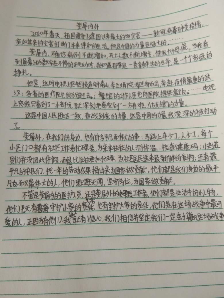 荧屏内外 热229 类别:记叙 发表时间:2020-10-25 14:39 已有 230 次阅读 指导老师:李海娟 所属学校:新密市青屏街道办事处初级中学