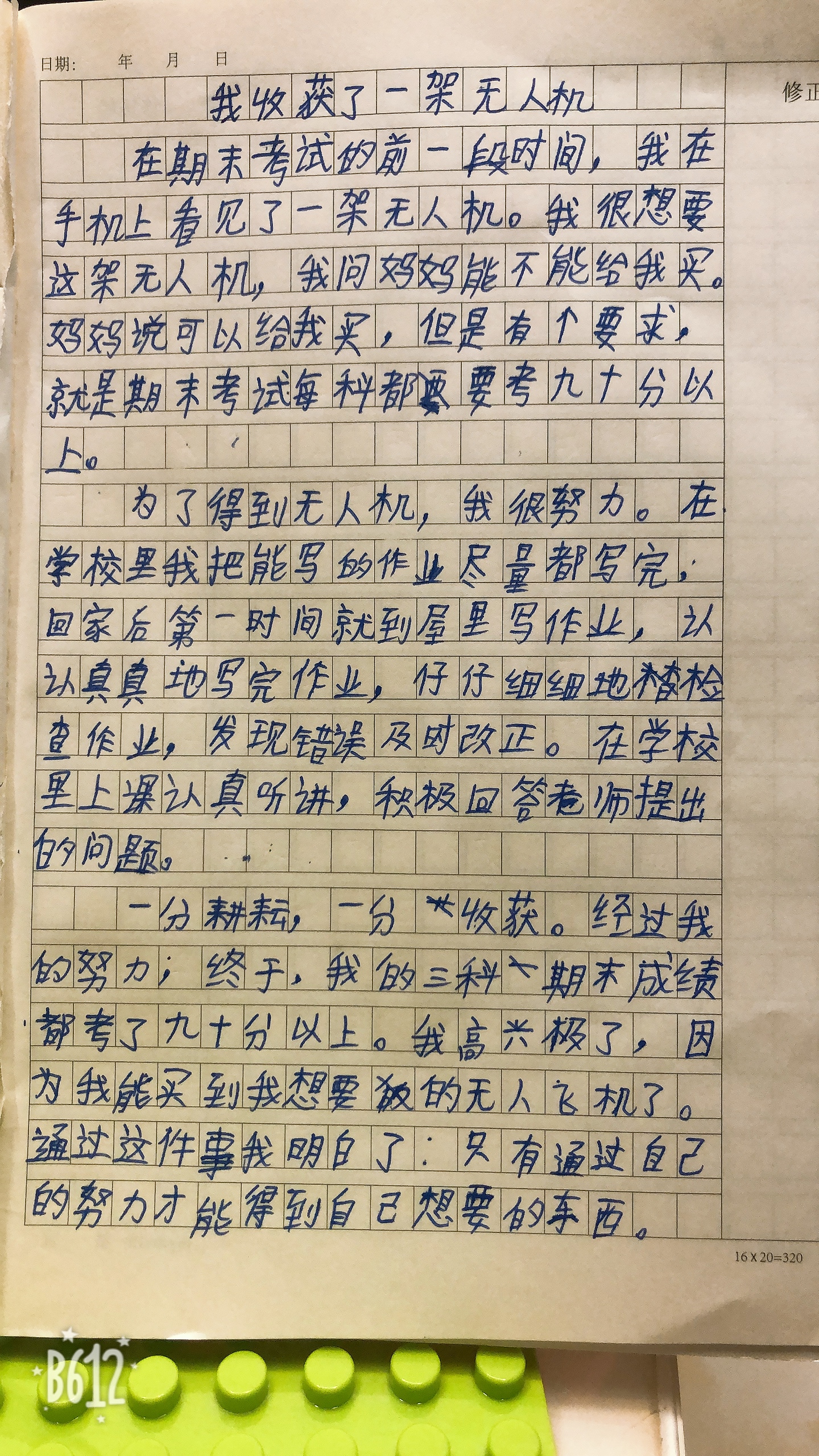 我收获了一架无人机 热578 类别:记叙 发表时间:2020-07-31 11:41 已有 579 次阅读 指导老师:老大 所属学校:新郑市市直小学