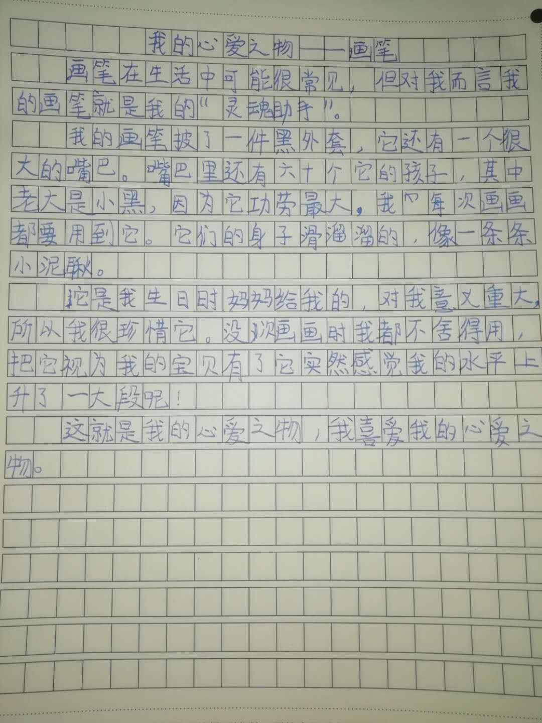 我的心爱之物——画笔 热736 类别:状物 发表时间:2020-07-28 11:43 已有 737 次阅读 指导老师:秦源沛 所属学校:金水区艺术小学