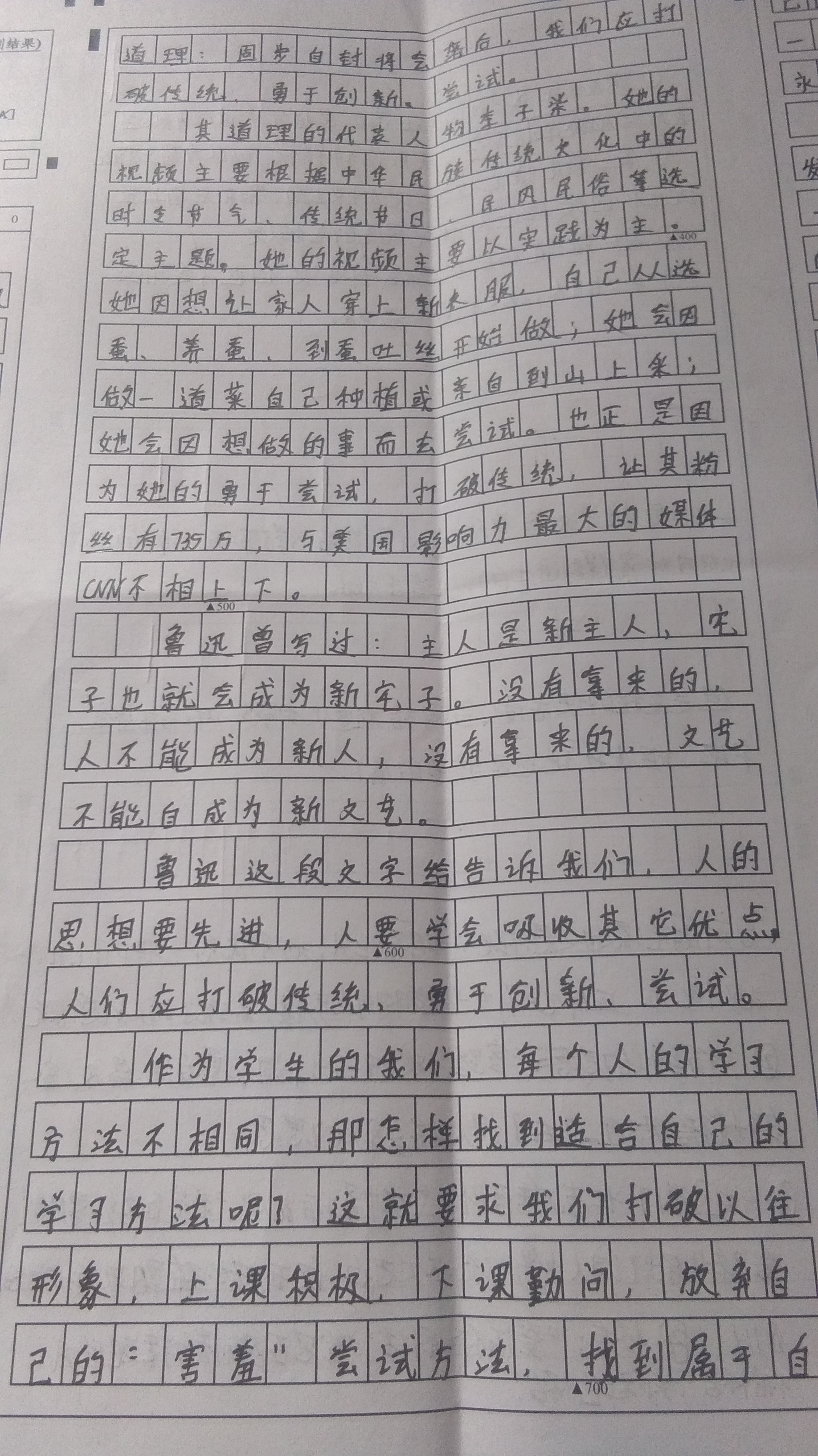 打破传统,勇于创新、尝试 热597 类别:原创 发表时间:2020-07-31 11:08 已有 598 次阅读 指导老师:王子 所属学校:中牟县第三高级中学