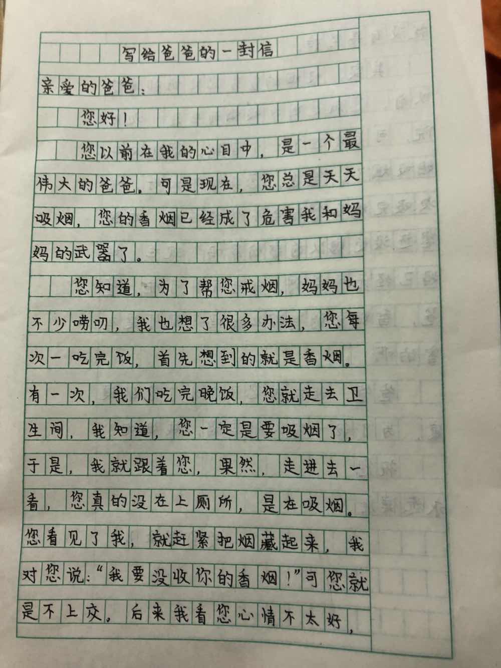 写给爸爸的一封信 热939 类别:写人 发表时间:2020-10-27 09:31 已有 940 次阅读 指导老师:窦老师 所属学校:新密市市直第二小学