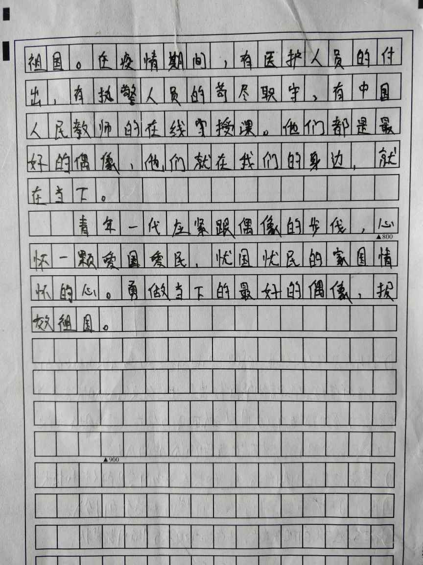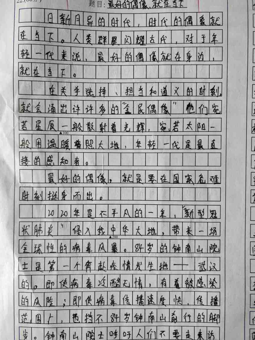最好的偶像,就在当下 热310 类别:议论 发表时间:2020-07-29 11:04 已有 311 次阅读 指导老师:李梦珂 所属学校:中牟县第三高级中学
