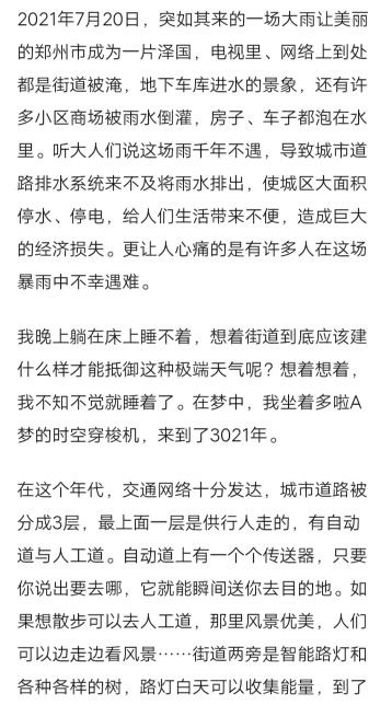 未来的街道 热500 类别:记叙 发表时间:2021-08-22 19:38 已有 501 次阅读 指导老师:衡艳荣 所属学校:中牟县新圃街小学