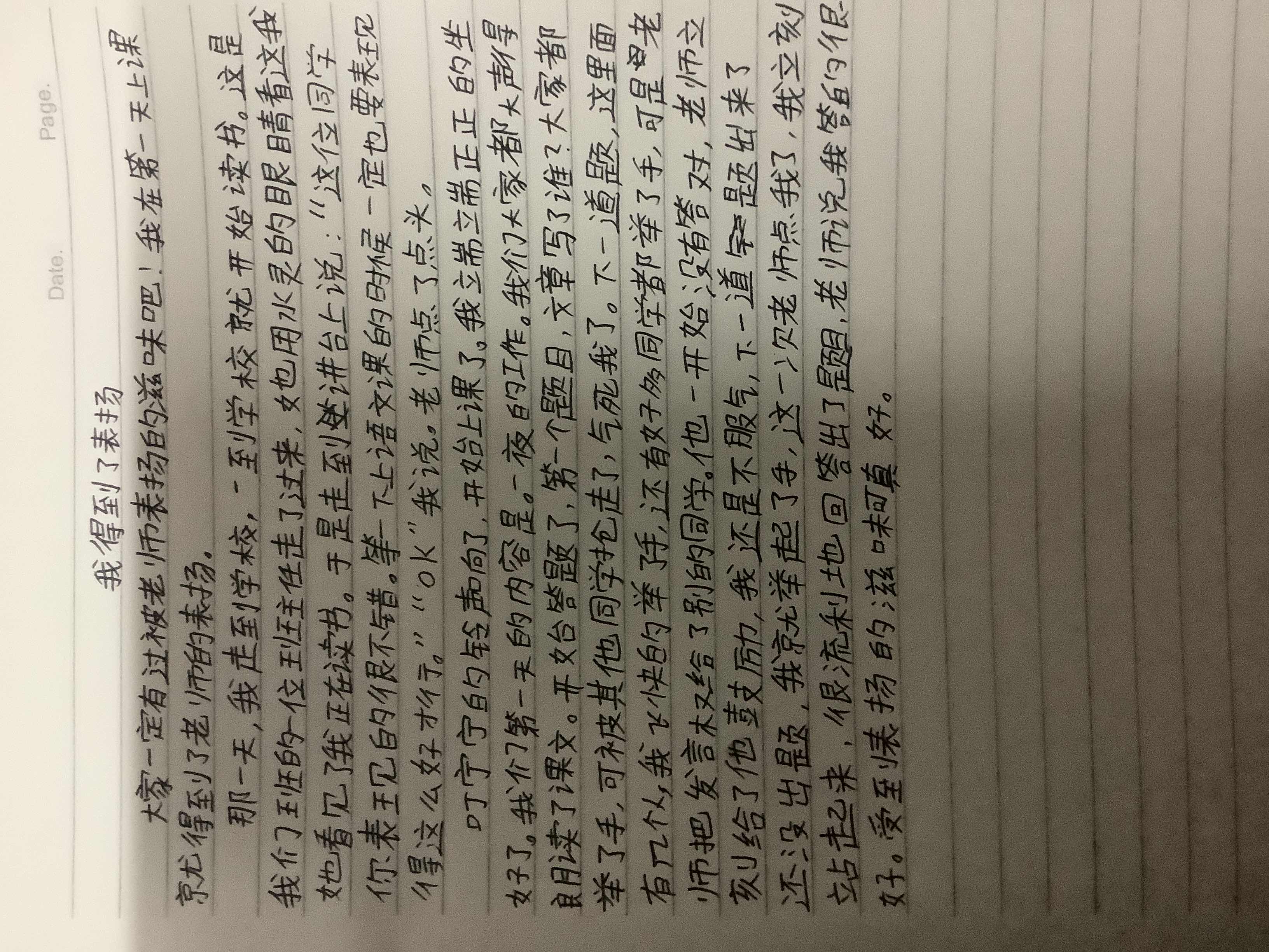 我得到了表扬 热521 类别:写人 发表时间:2020-09-05 23:15 已有 522 次阅读 指导老师:刘海霞 所属学校:西大街青石河学校