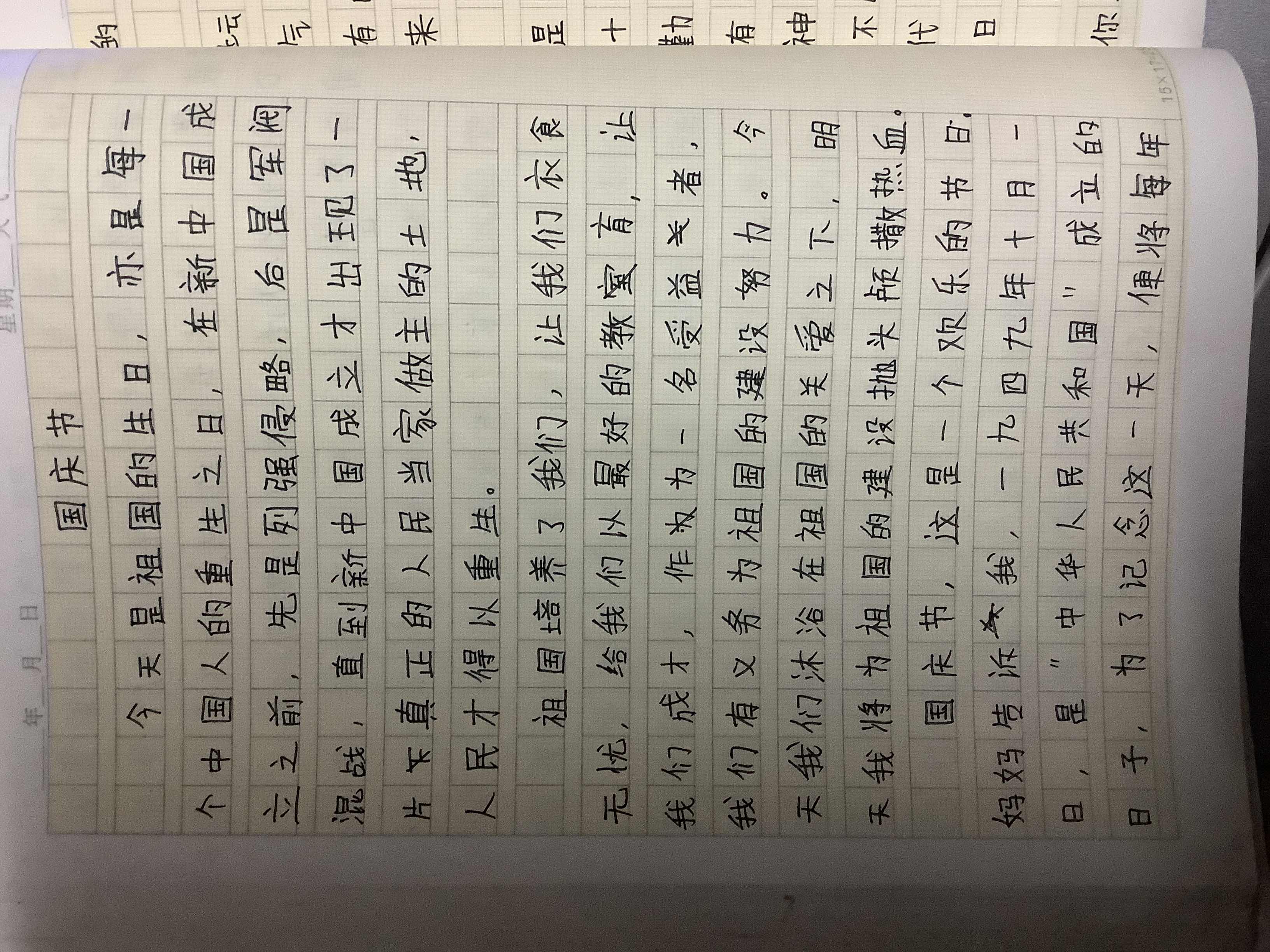 国庆节 热1168 类别:记叙 发表时间:2021-10-07 20:11 已有 1169 次阅读 指导老师:赵转萍 所属学校:西大街青石河学校