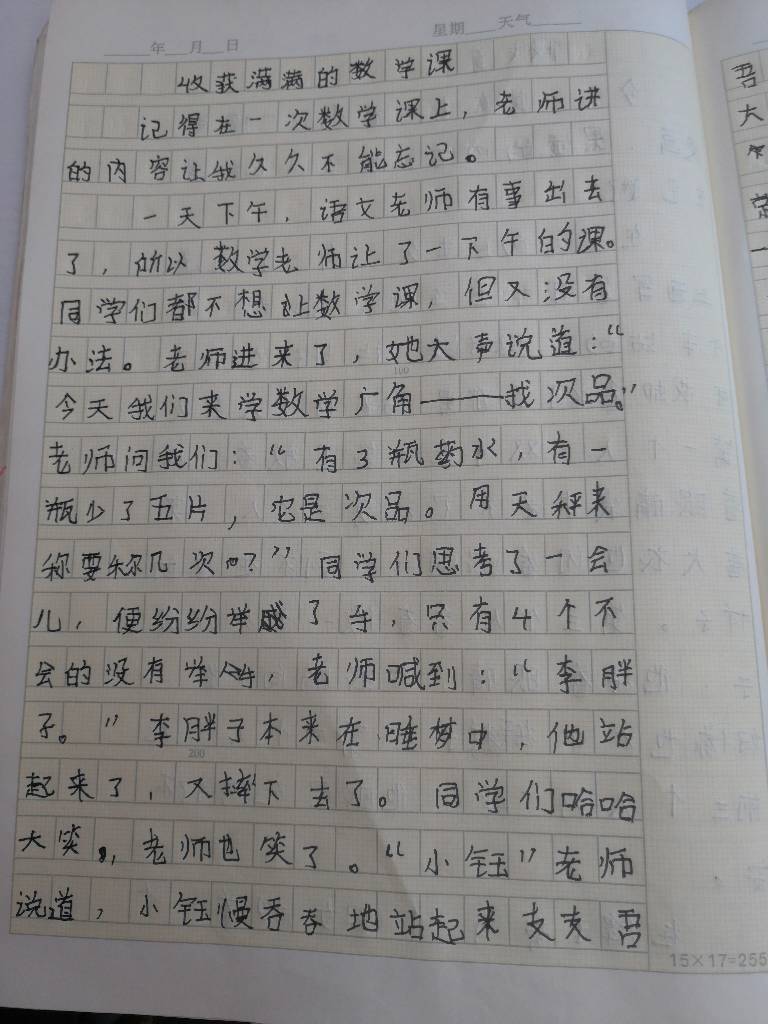 收获满满的数学课 热706 类别:记叙 发表时间:2021-07-15 09:43 已有 707 次阅读 指导老师:刘海霞 所属学校:西大街青石河学校
