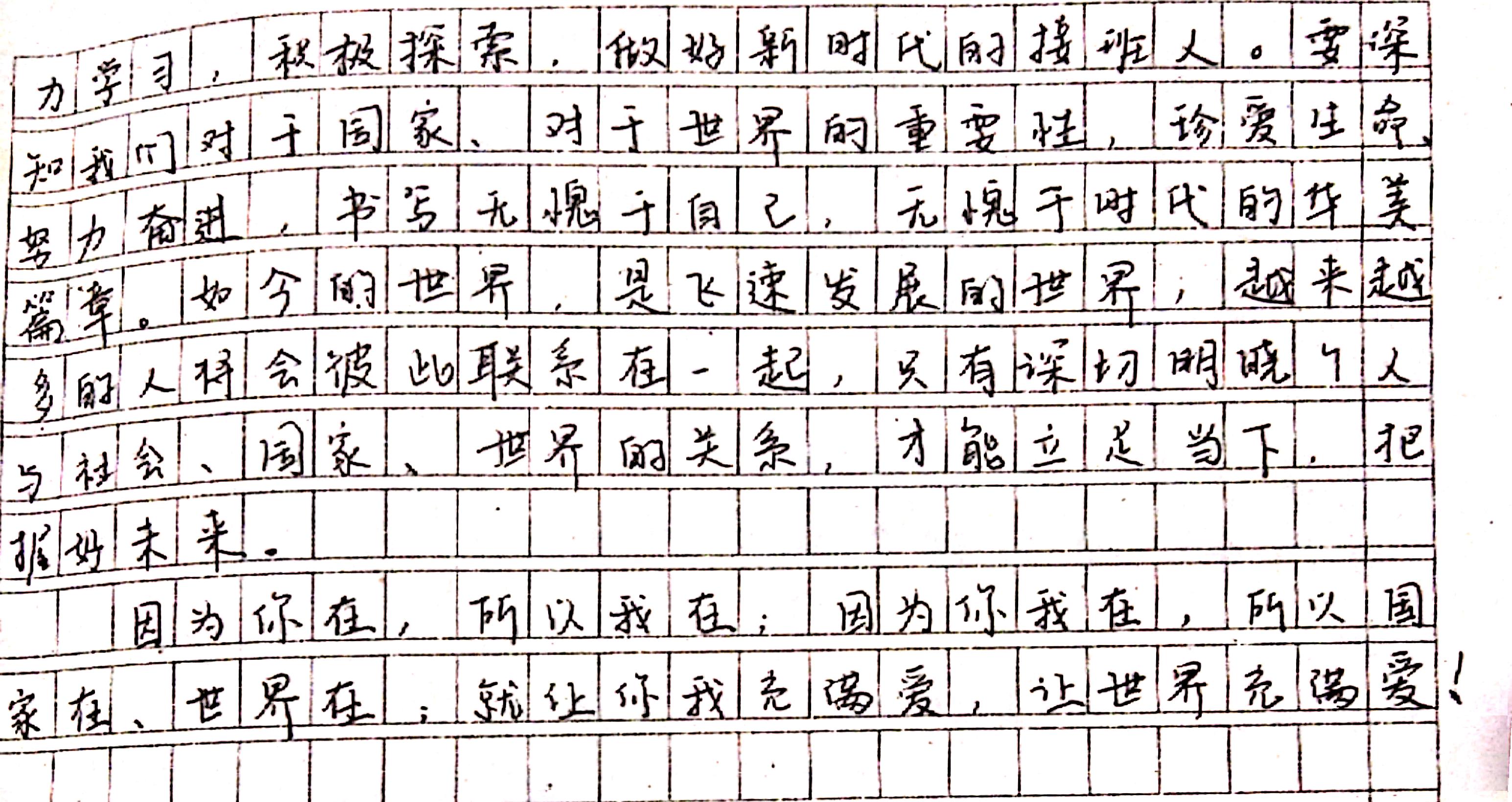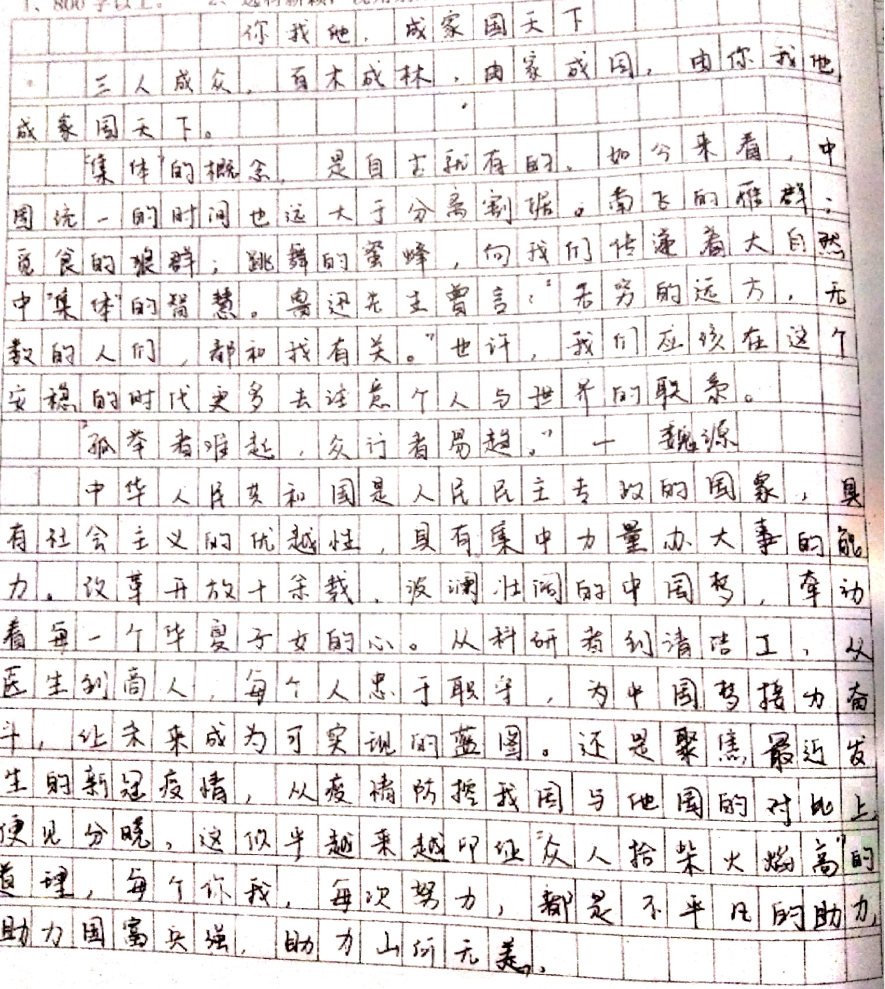 你我他,成家国天下 热435 类别:议论 发表时间:2020-07-09 13:24 已有 436 次阅读 指导老师:费涛涛 所属学校:巩义市第二高级中学