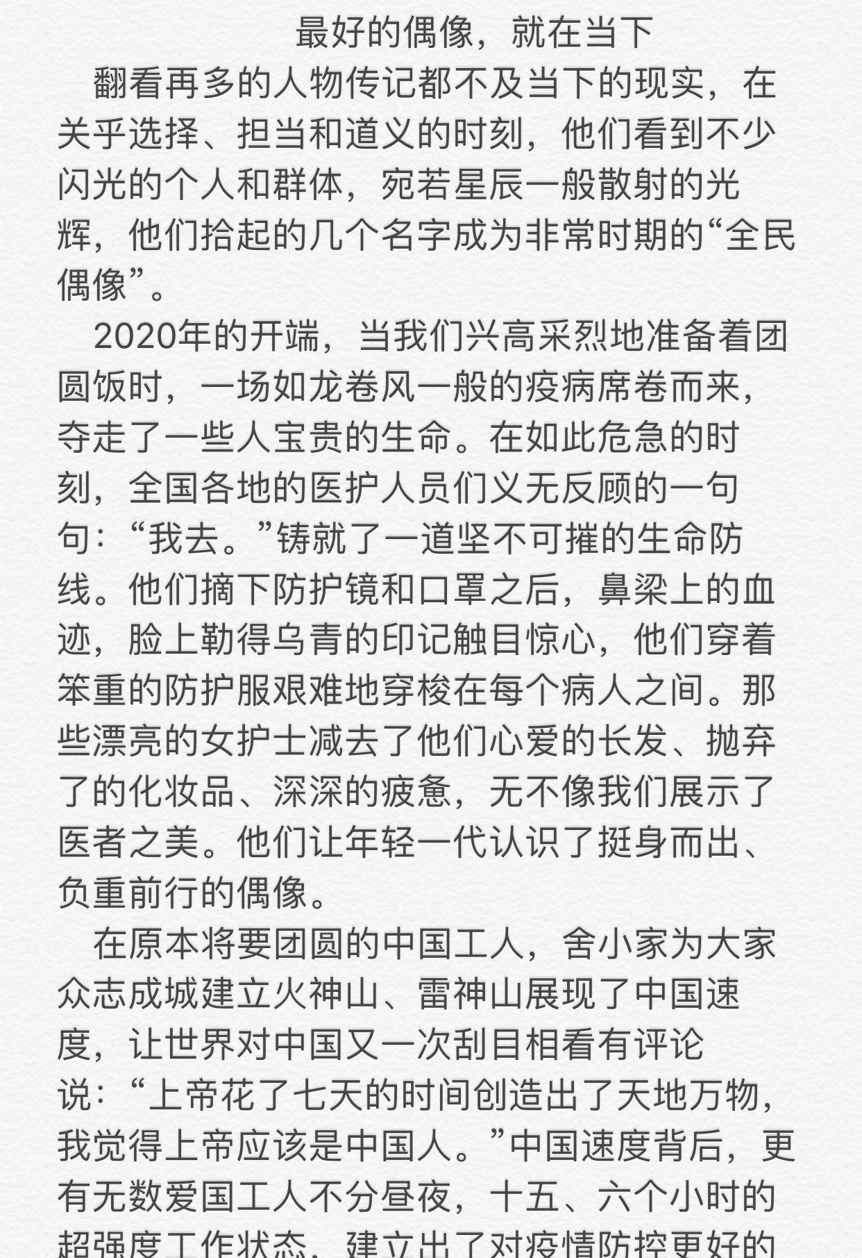 最好的偶像,就在当下 热588 类别:议论 发表时间:2020-07-09 13:05 已有 589 次阅读 指导老师:庞晓英 所属学校:巩义市第二高级中学