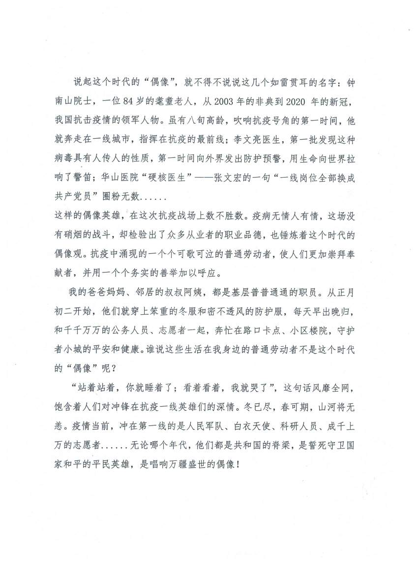 最好的偶像,就在当下 热443 类别:抒情 发表时间:2020-07-09 19:03 已有 444 次阅读 指导老师:张伟 所属学校:巩义市第二高级中学