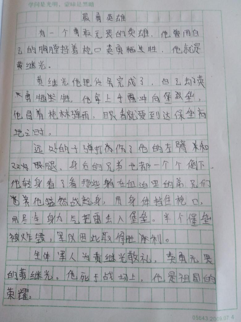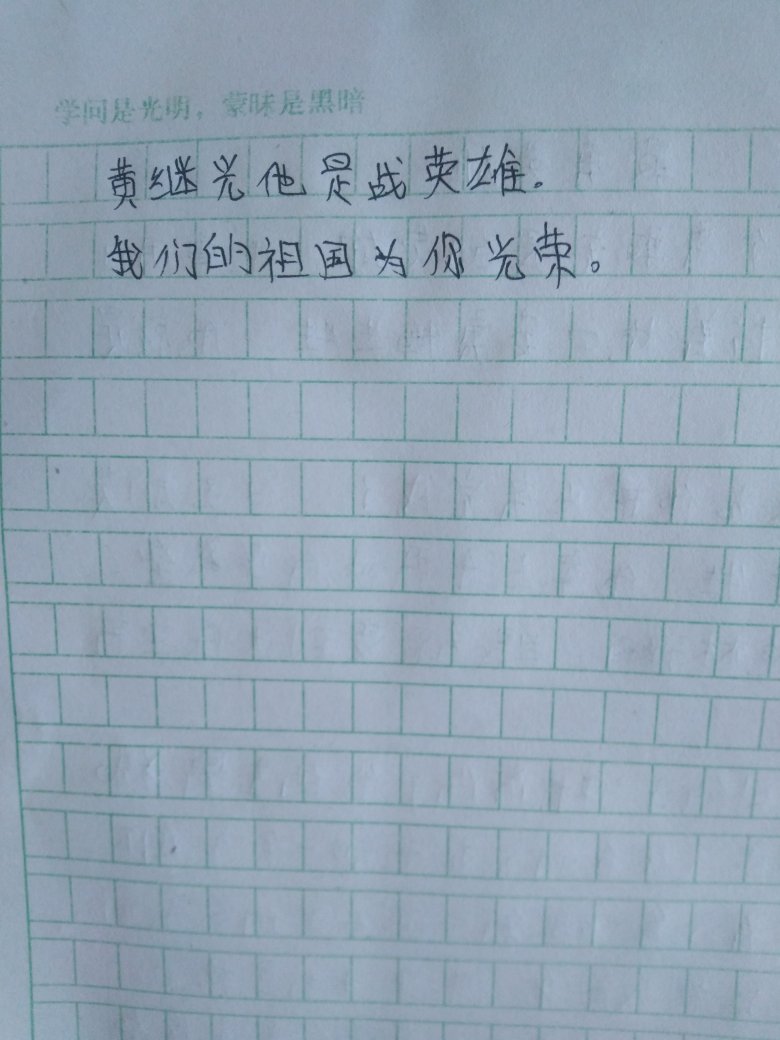黄继光 热488 类别:写人 发表时间:2021-09-15 15:40 已有 489 次阅读 指导老师:岳艳红 所属学校:中牟县平安路学校